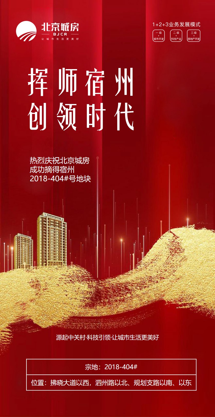 此次成功摘地,再次加速了集团公司布局宿州的战略步伐,成为集团公司“1+2+100”战略布局的重要组成部分。集团公司将一如既往秉承“让城市生活更美好”的企业使命,将绿色、科技、生态、智慧的产品主张创领于宿州,让宿州人民真正感受到更加美好的品质生活。