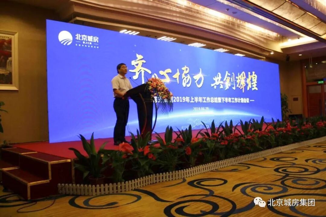 2019年6月29日,北京城房科技集团2019年中会议隆重举行。集团董事长徐其文、副董事长王康兵、副总裁彭学斌、副总裁李光明、投资发展中心总经理彭浩东、营销管理中心总经理赵飞、常务副总经理王保国等领导出席大会。集团总部及各城市公司员工代表参加会议。此次会议主题为“齐心协力共创辉煌”,会议总结了上半年的工作成果,明确了下半年的工作计划。在集团董事长的率领下,全体员工一呼百应,坚定表示将不负重托、使命必达,认真努力地完成工作任务。